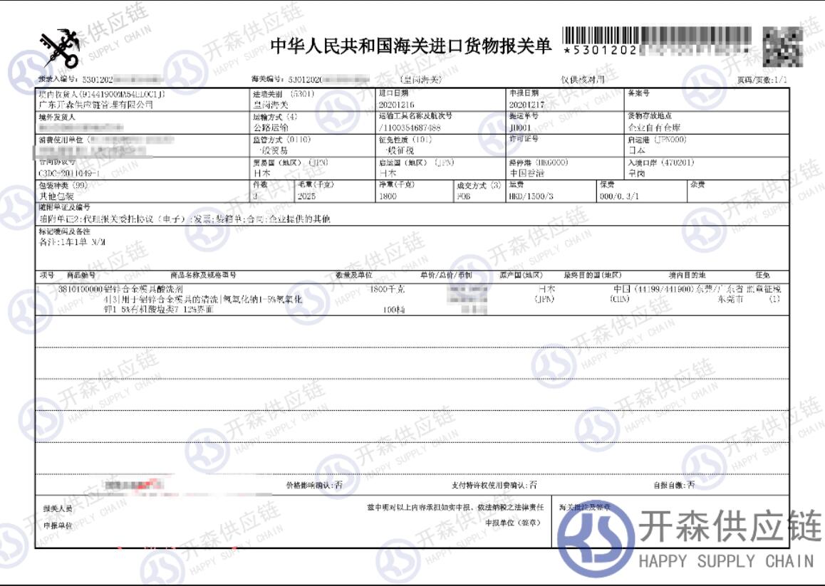 【本文结语】 上述就是深圳港日本清洁剂进口报关清关代理服务【经典案例】的全部内容,希望能对您有所帮助,如有化工品进口报关上任何疑问及问题可随时在线联系我们或拨打 18002611553,九游娱乐app官方入口供应链拥有丰富的化工品进口报关操作经验及案例,10余年进口经验为您所用,各类进口疑难都能为您一一解答及协助快速处理解决!