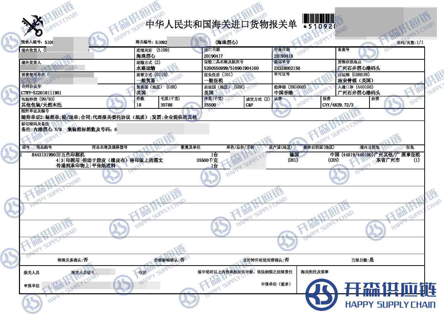 原文标题:广州港旧五色印刷机进口报关清关代理【进口案例】