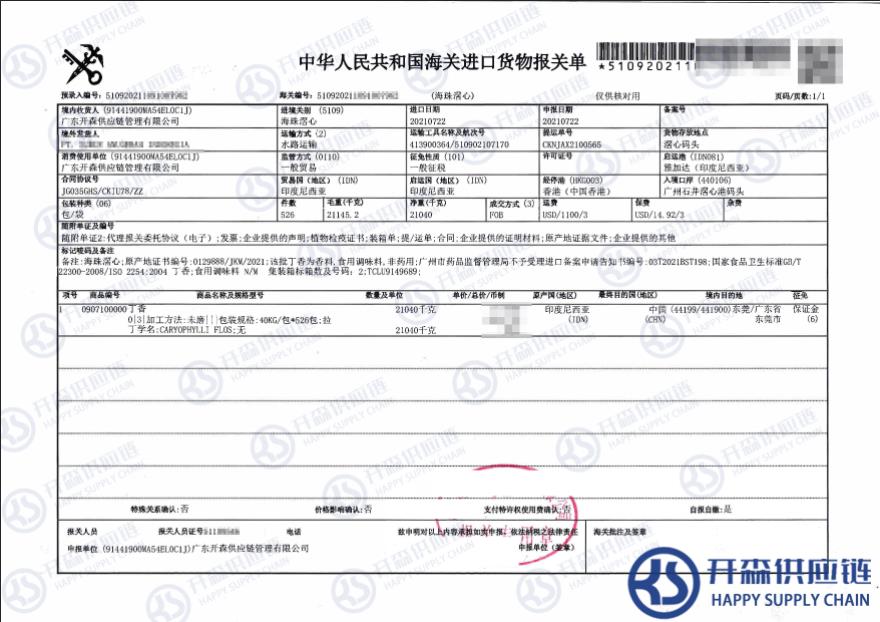 【本文结语】 上述就是【进口案例】印度丁香(丁子香)进口报关代理服务的全部内容,希望能对您有所帮助,如有农副产品进口报关上任何疑问及问题可随时在线联系我们或拨打 18002611553,九游娱乐app官方入口供应链拥有丰富的农副产品进口报关操作经验及案例,10余年进口经验为您所用,各类进口疑难都能为您一一解答及协助快速处理解决!