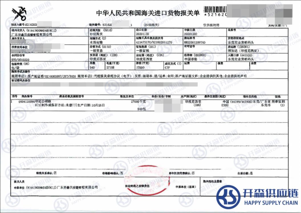 【本文结语】 上述就是【进口案例】印度尼西亚白胡椒进口报关代理服务的全部内容,希望能对您有所帮助,如有农副产品进口报关上任何疑问及问题可随时在线联系我们或拨打 18002611553,九游娱乐app官方入口供应链拥有丰富的农副产品进口报关操作经验及案例,10余年进口经验为您所用,各类进口疑难都能为您一一解答及协助快速处理解决!