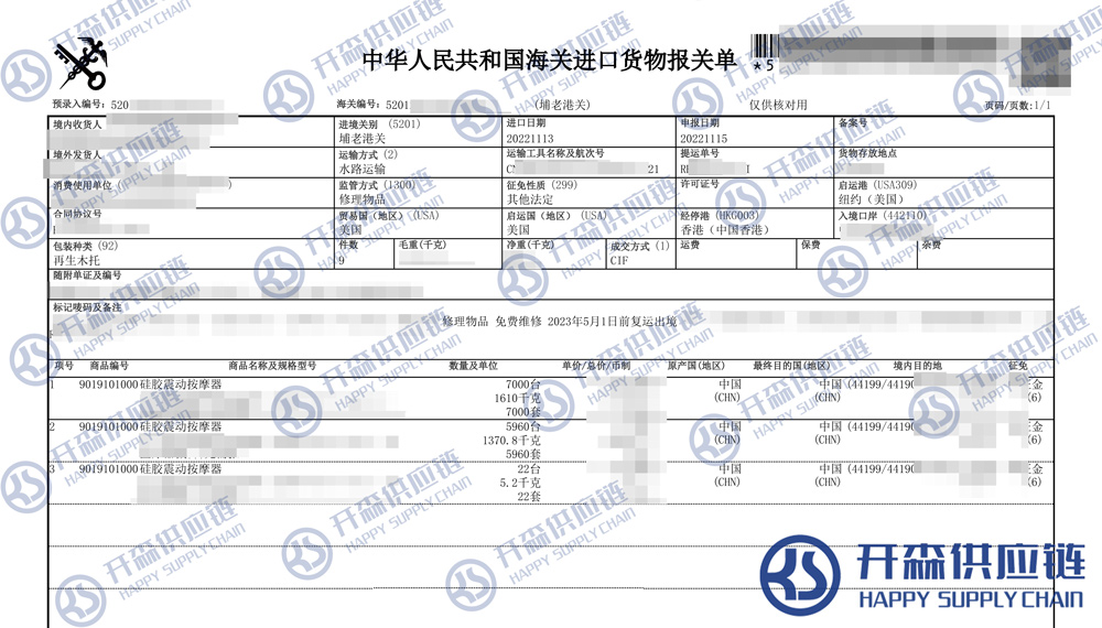 【本文结语】 上述就是震动按摩器退运(返修)进口报关清关代理服务【经典案例】的全部内容,希望能对您有所帮助,如有退运进口报关上任何疑问及问题可随时在线联系我们或拨打 18002611553,九游娱乐app官方入口供应链拥有丰富的退运进口报关操作经验及案例,10余年进口经验为您所用,各类进口疑难都能为您一一解答及协助快速处理解决!
