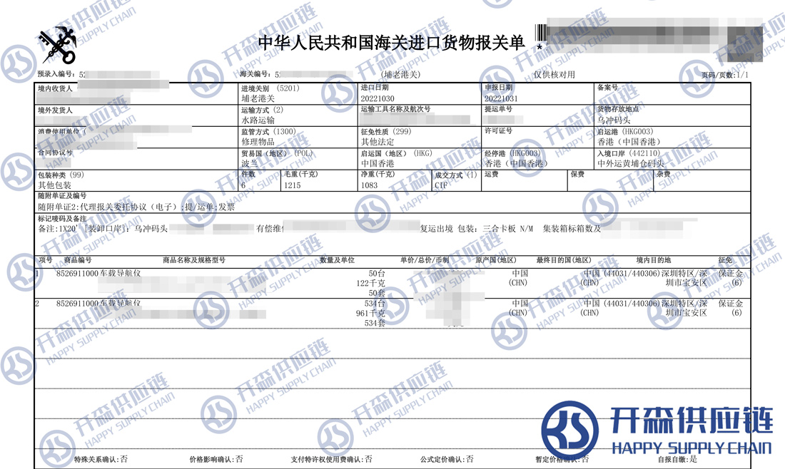 【本文结语】 上述就是车载导航仪退运(返修)进出口报关代理服务【清关案例】的全部内容,希望能对您有所帮助,如有进口报关,进口报关代理公司,进口报关代理上任何疑问及问题可随时在线联系我们或拨打 18002611553,九游娱乐app官方入口供应链拥有丰富的进口报关,进口报关代理公司,进口报关代理操作经验及案例,10余年进口经验为您所用,各类进口疑难都能为您一一解答及协助快速处理解决!