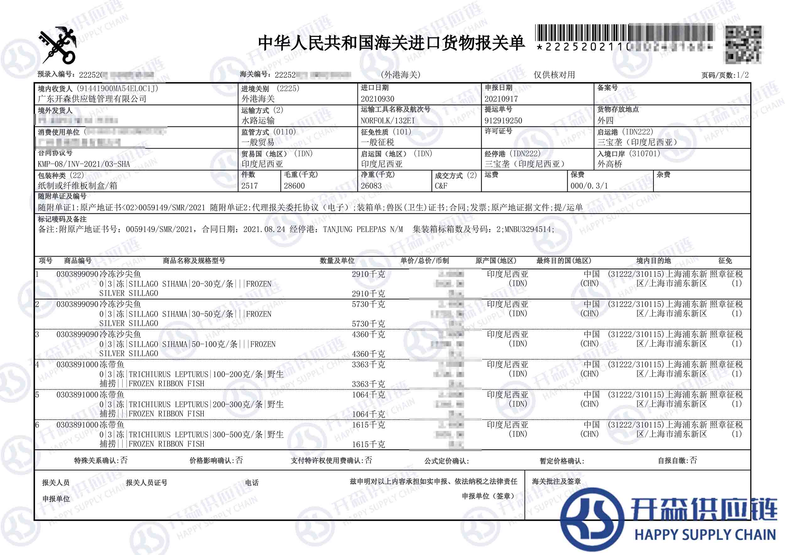 【导读】您正在阅读的是关于印度尼西亚冷冻沙尖鱼进口报关代理服务【经典案例】的内容,本文由九游娱乐app官方入口水产品进口报关代理小编整理编写;