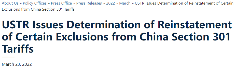 本次关税豁免有效期:2021年10月31日至2022年12月31日。