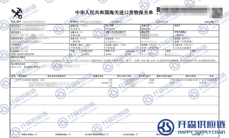 【本文结语】 上述就是广州黄埔港旧发电机组进口报关清关代理服务【经典案例】的全部内容,希望能对您有所帮助,如有二手机械进口报关上任何疑问及问题可随时在线联系我们或拨打 18002611553,九游娱乐app官方入口供应链拥有丰富的二手机械进口报关操作经验及案例,10余年进口经验为您所用,各类进口疑难都能为您一一解答及协助快速处理解决!