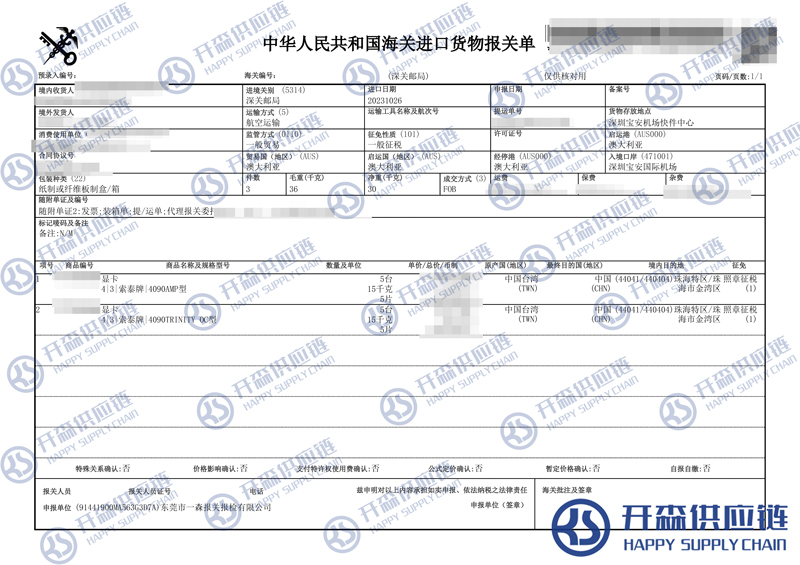 原文标题:深圳机场高端显卡进口报关代理服务【清关案例】