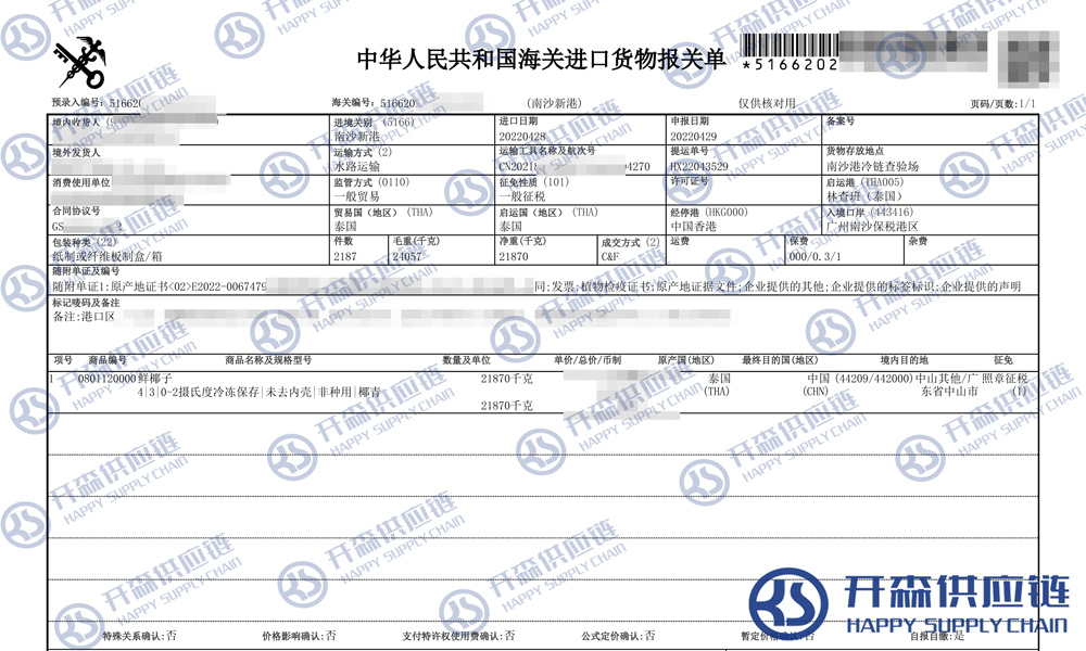 【本文结语】 上述就是泰国鲜椰子进口清关报关代理服务【经典案例】的全部内容,希望能对您有所帮助,如有水果进口报关上任何疑问及问题可随时在线联系我们或拨打 18002611553,九游娱乐app官方入口供应链拥有丰富的水果进口报关操作经验及案例,10余年进口经验为您所用,各类进口疑难都能为您一一解答及协助快速处理解决!